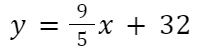Le b représente le point de départ de la droite sur l'axe des y (aussi appelée l'ordonnée à l'origine!) On peut donc conclure que 32 est l'ordonnée à l'origine de cette droite. Si on se valide en regardant le graphique, on voit que la droite croise l'axe des y à la hauteur de x=32.