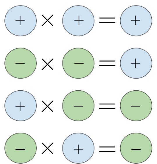 Lorsqu'on multiplie deux nombres négatifs, on obtient un résultat positif.