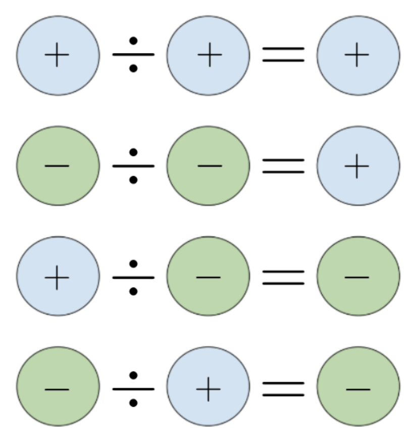 Pour compléter l'explication de ton collègue, tu dois avoir une réponse négative si un des nombres de la multiplication ou de la division est négatif, et tu dois avoir une réponse positive si les deux nombres sont négatifs :