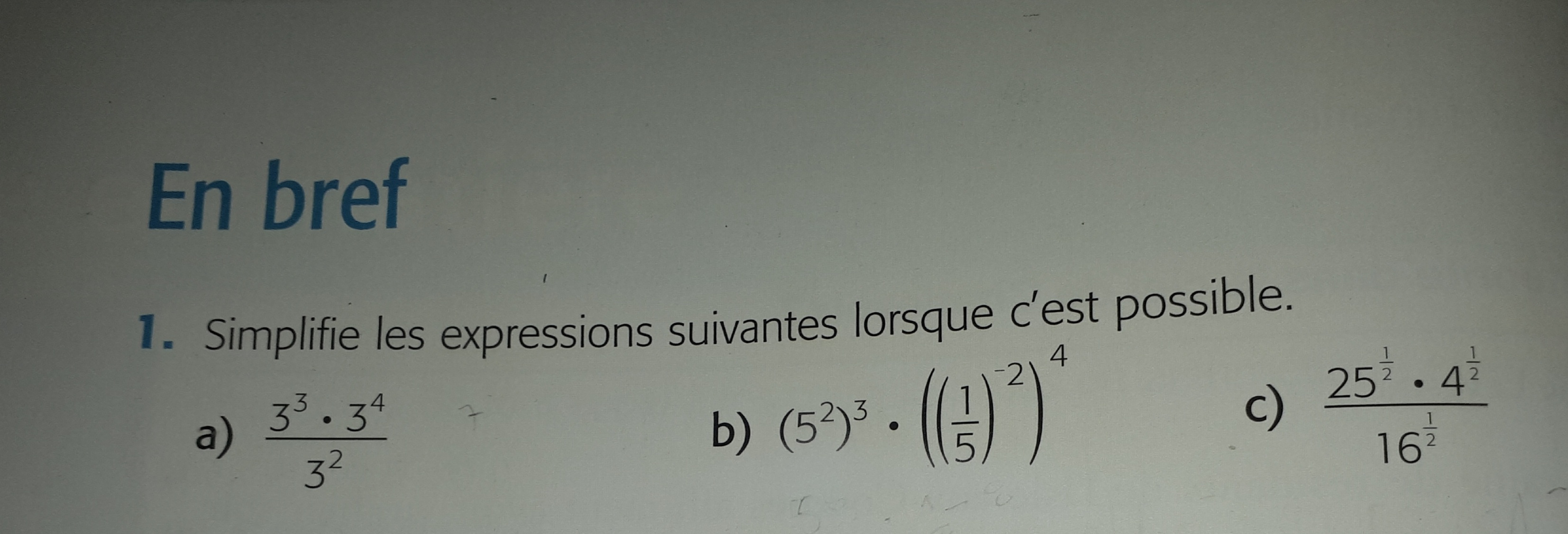Pour t'aider à répondre aux questions b) et c), je t'invite à réviser les lois des exposants en consultant la fiche explicative suivante: