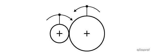 Lorsque les roues sont en contact, les rotations des roues sont inverses :
