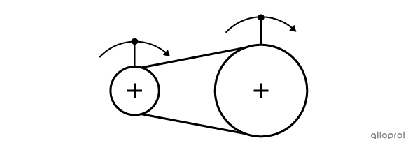 Par contre, si les roues ne sont pas en contact, mais qu'elles ont une courroie, elles tournent dans le même sens :