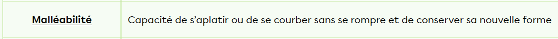 1) Quelle est la différence entre "malléable" et "ductile" ?