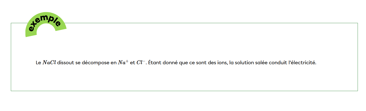 Lorsqu'un soluté électrolytique est placé en solution aqueuse, il se dissociera pour produire des cations (charges positives) et des anions (charges négatives). Ce sont les charges négatives qui circuleront dans la solution et qui vont permettre la présence d'un courant électrique.