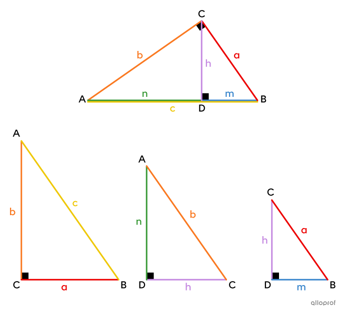 Tu n'as sûrement pas encore vu les relations trigonométriques. Il faudra donc utiliser les relations métriques :