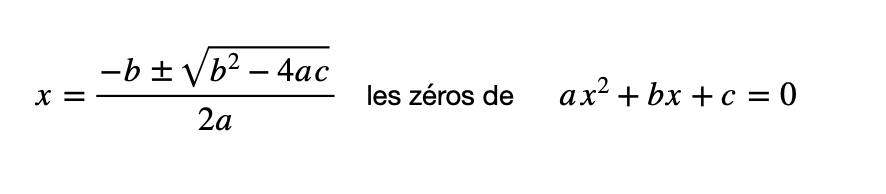 La formule bien connue pour trouver les zéros d'un polynôme de degré deux: