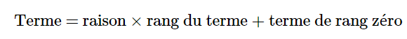 On sait que la raison est 4245, et que le 3e terme est 8500. Avec ces informations, on peut trouver le terme du rang zéro :