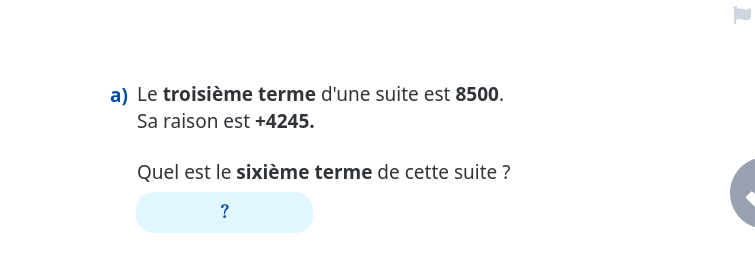 Tu dois donc ajouter 3 fois la raison au troisième terme pour obtenir le sixième.