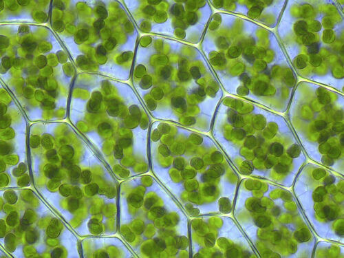 Il est possible d'observer les chloroplastes au sein des cellules végétales à l'aide du microscope. Ils ressemblent à ceci :