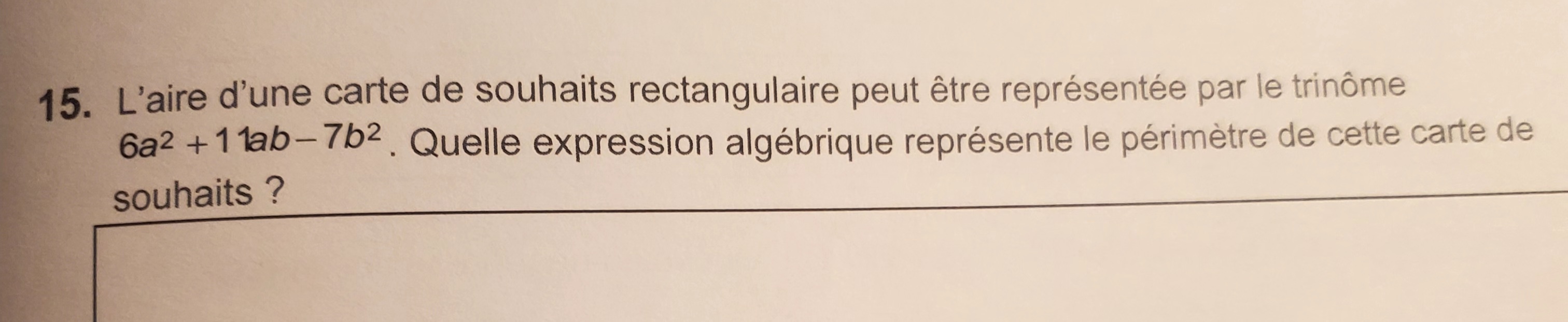 L'aire 6a^2 +11ab -7b^2 peut se factoriser en