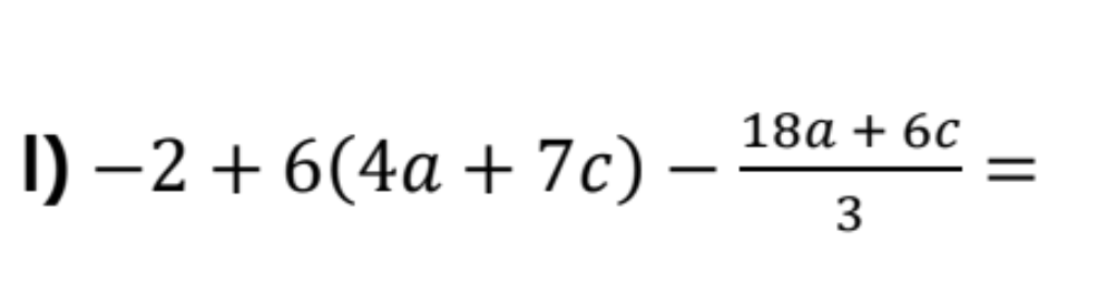 Tu peux considérer qu'il y a un zéro de l'autre côté du symbole égal (=) pour l'instant. Tu peux donc faire bouger le terme 18a+6c/3 pour le mettre de l'autre côté! N'oublie pas les règles de transformation quand un terme passe d'un autre côté du symbole =!