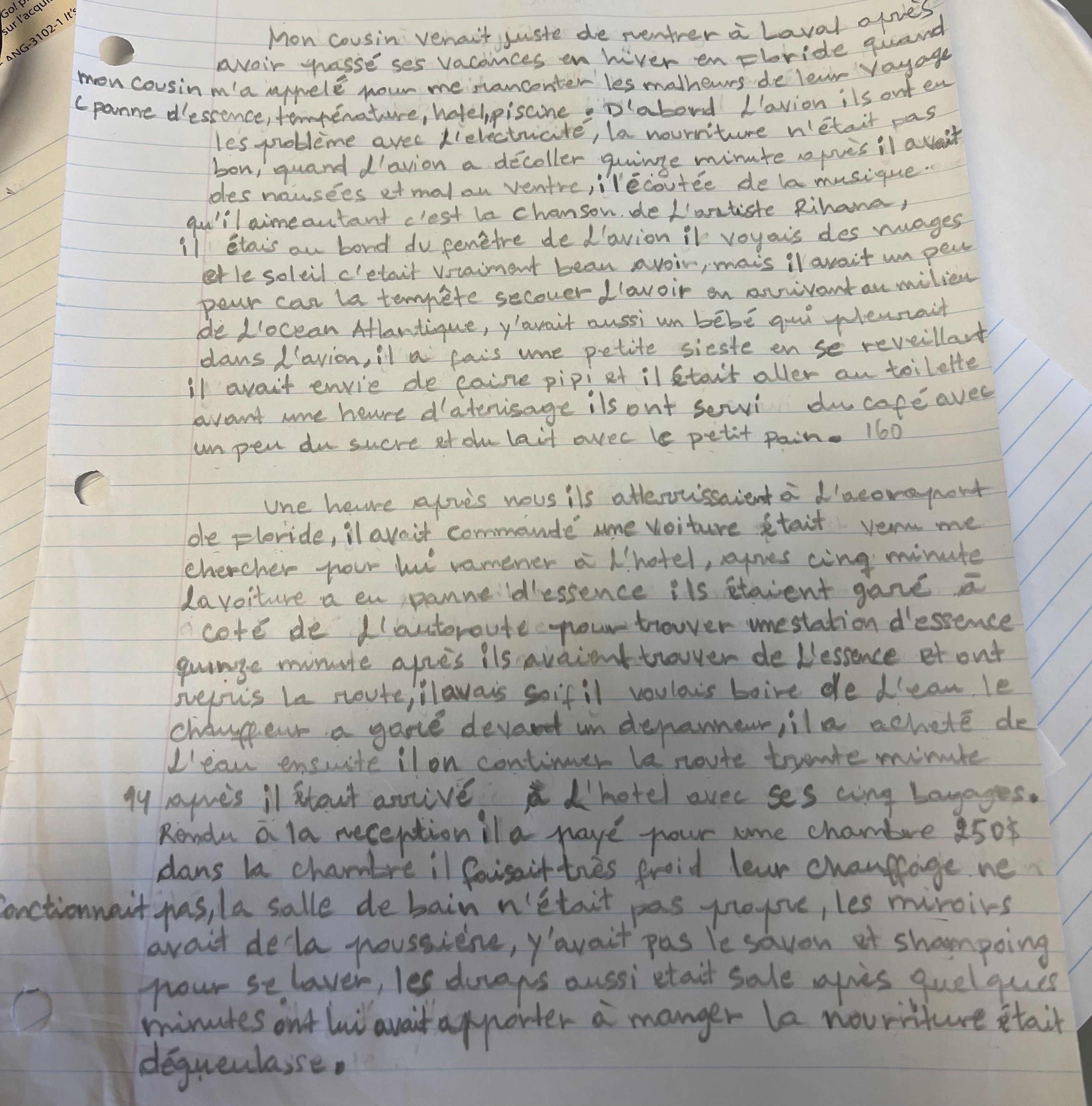 Ce qui pourrait être davantage révisé afin d'améliorer la qualité de ton texte concerne: tes accords de pluriel, tes accords de masculin/féminin, tes participes passés, et quelques conjugaisons erronées( accord du verbe avec le sujet ).
