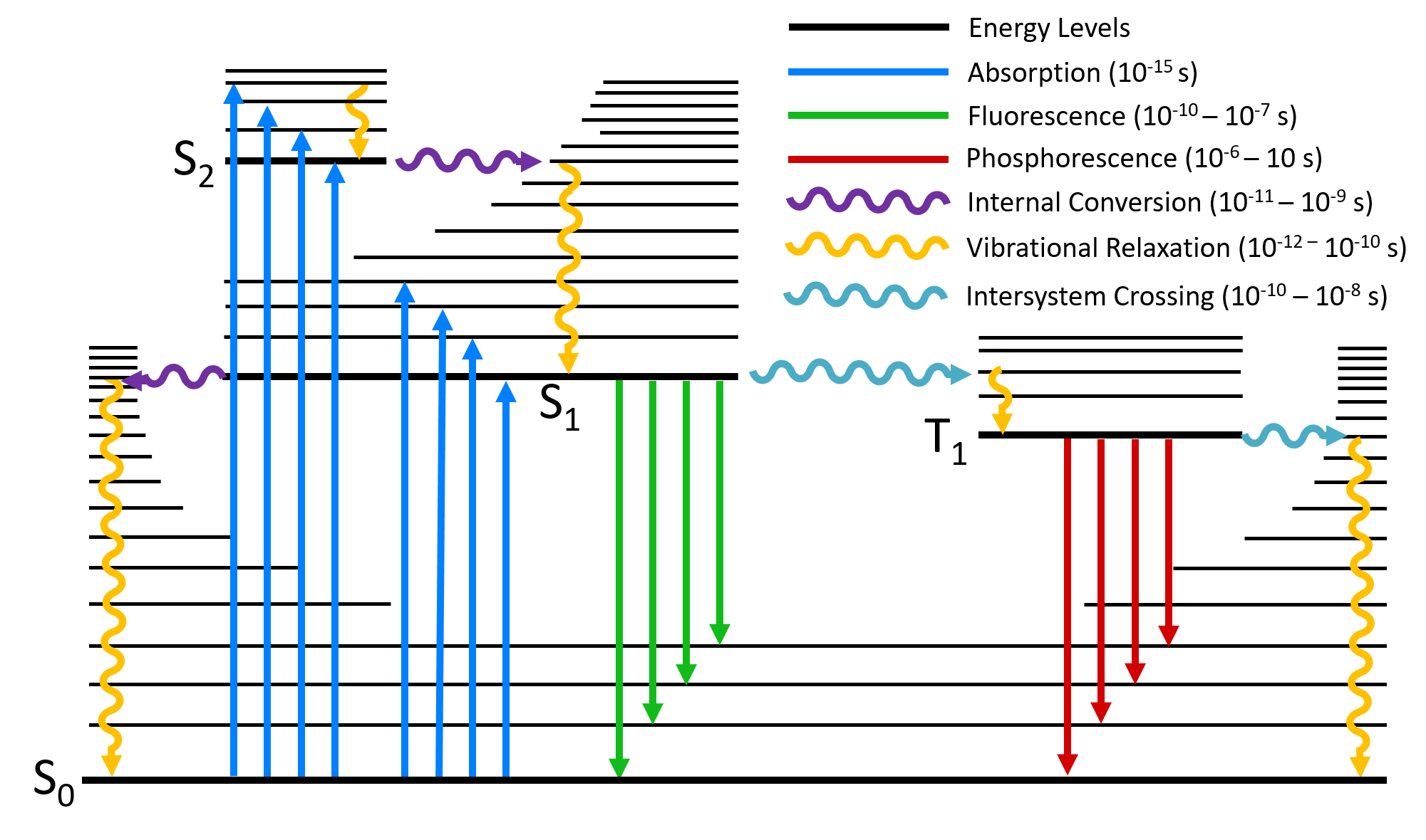 Pour ce qui est de la transition, il y a différent type de transition, mais avec cette énergie, il semble qu'il s'agisse d'une transition lié à une absorption et non une vibration :