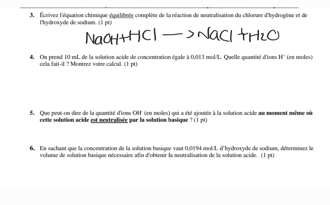 Lorsqu'un acide est mis en solution, il libère des ions H+. Pour une mole d'acide, il y a une mole d'ions H+ en solution, si cet acide est fort. Il faut que tu trouves la quantité en moles d'ions dans 10mL à partir de la concentration donnée.