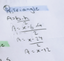 Tu n'as pas besoin de tout résoudre puisqu'on te demande une expression algébrique. Tu as bien commencé en trouvant l'aire du grand rectangle, mais tu t'es légèrement trompé dans l'aire du triangle et du petit carré. Le triangle ta formule est base x hauteur divisé par 2, donc (x-6) x 4 / 2. Quand on multiplie (x-6) x 4 cela donne 4X - 24 (il faut multiplier chacun des termes par 4) Donc l'aire du triangle est (4x-24) / 2. Même chose pour le petit rectangle, (2x-4) multiplié par 1.5 donne 3x - 6.