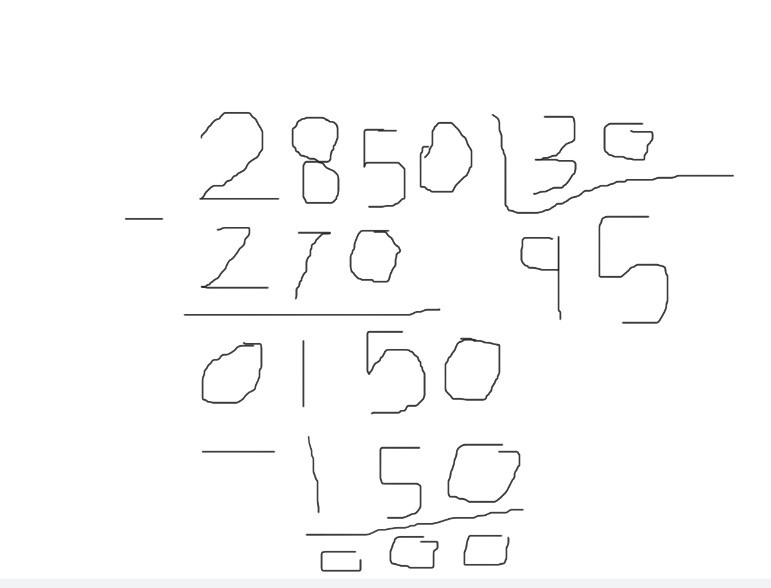 30 ne rentre pas dans 2 ni dans 28 mais il entre dans 285 in rentre 9 fois donc 30 fois 9 = 270 ensuite 30 entre 5 fois dans 150 30x5=150 et voila