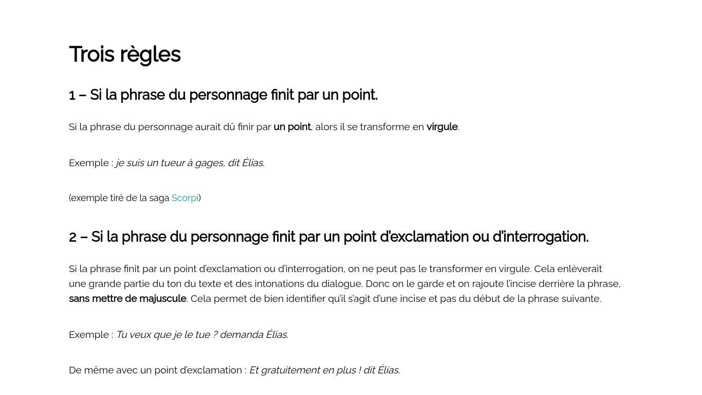 De plus, pour savoir mettre la ponctuation appropriée lorsqu'on est dans un dialogue, il faut respecter trois règles: