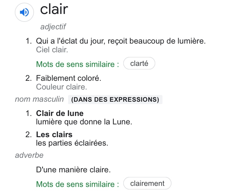 L'adjectif "clair" s'accorde avec en genre et en nombre avec le nom qu'il accompagne. Au féminin, on aurait "claire", et au masculin, "clair".
