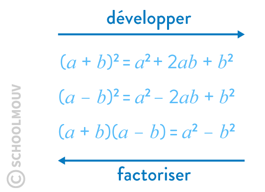 Par exemple, si on a l'expression (x+3)², en utilisant la première identité, on trouve directement l'expression équivalente développée, soit x²+6x+9, mais tu pourrais arriver au même résultat en développant par toi-même :