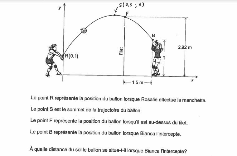 En premier lieu, tu devrais déterminer l’équation de ta parabole.