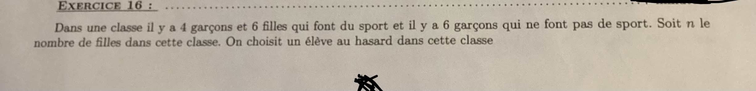 Il y a 4 garçons qui font du sport et 6 garçons qui ne font pas de sport, il y a donc 10 garçons dans cette classe. Il y a \(n\) filles. Le nombre d'élèves dans la classe est donc \[n + 10\]Qu'en penses-tu ?