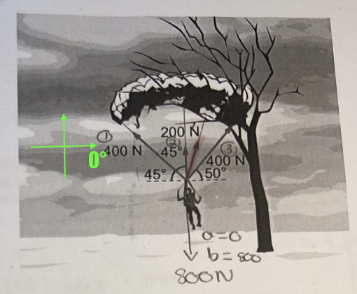 Ainsi, pour la force 1, on considèrerait plutôt l'angle \( 180° - 45° = 135°\). Ainsi, la composante a serait de -282,84 N alors que la composante b serait de 282,84 N.