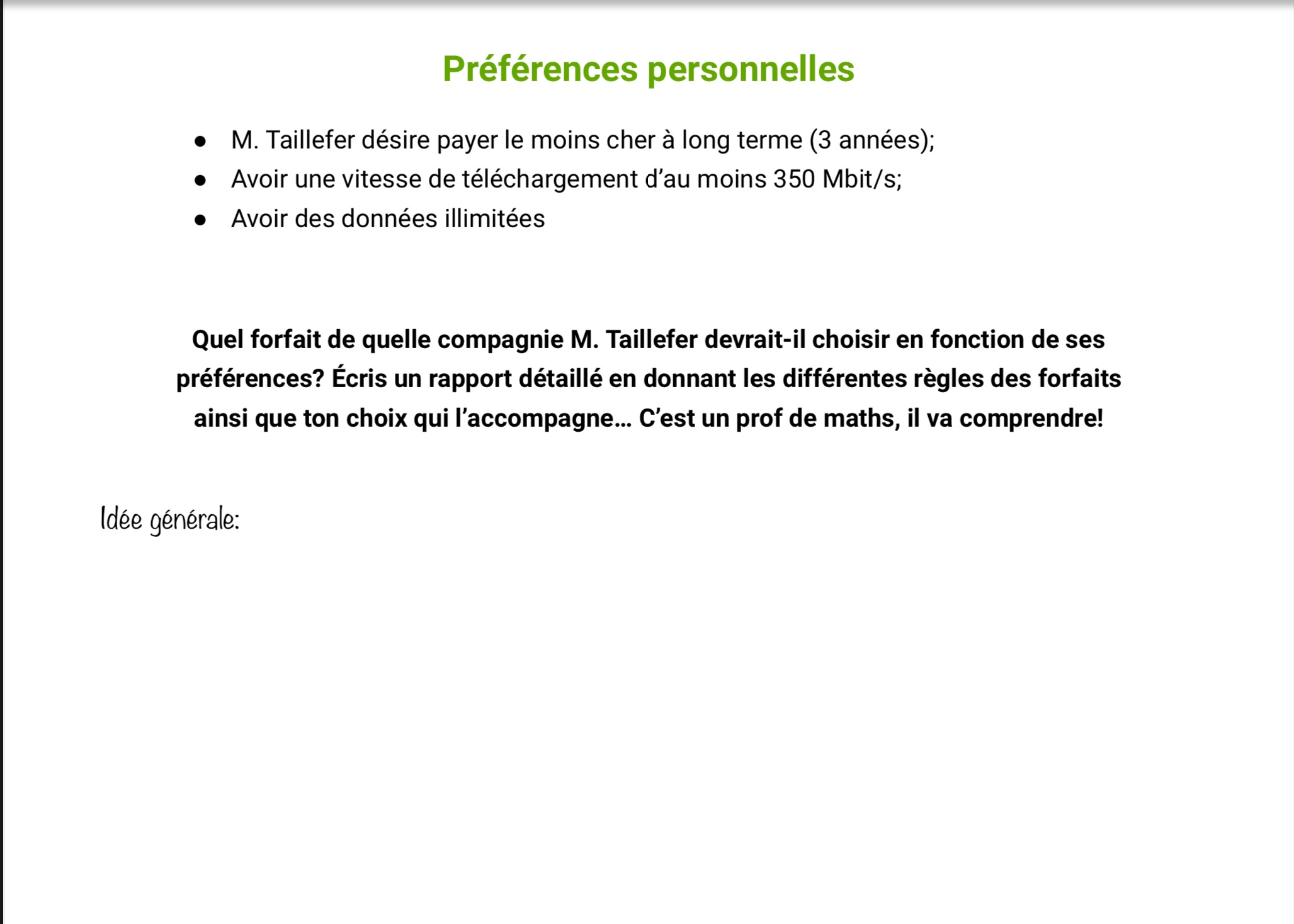 Voici pourquoi ce forfait est le meilleur choix selon les préférences de M. Taillefer :