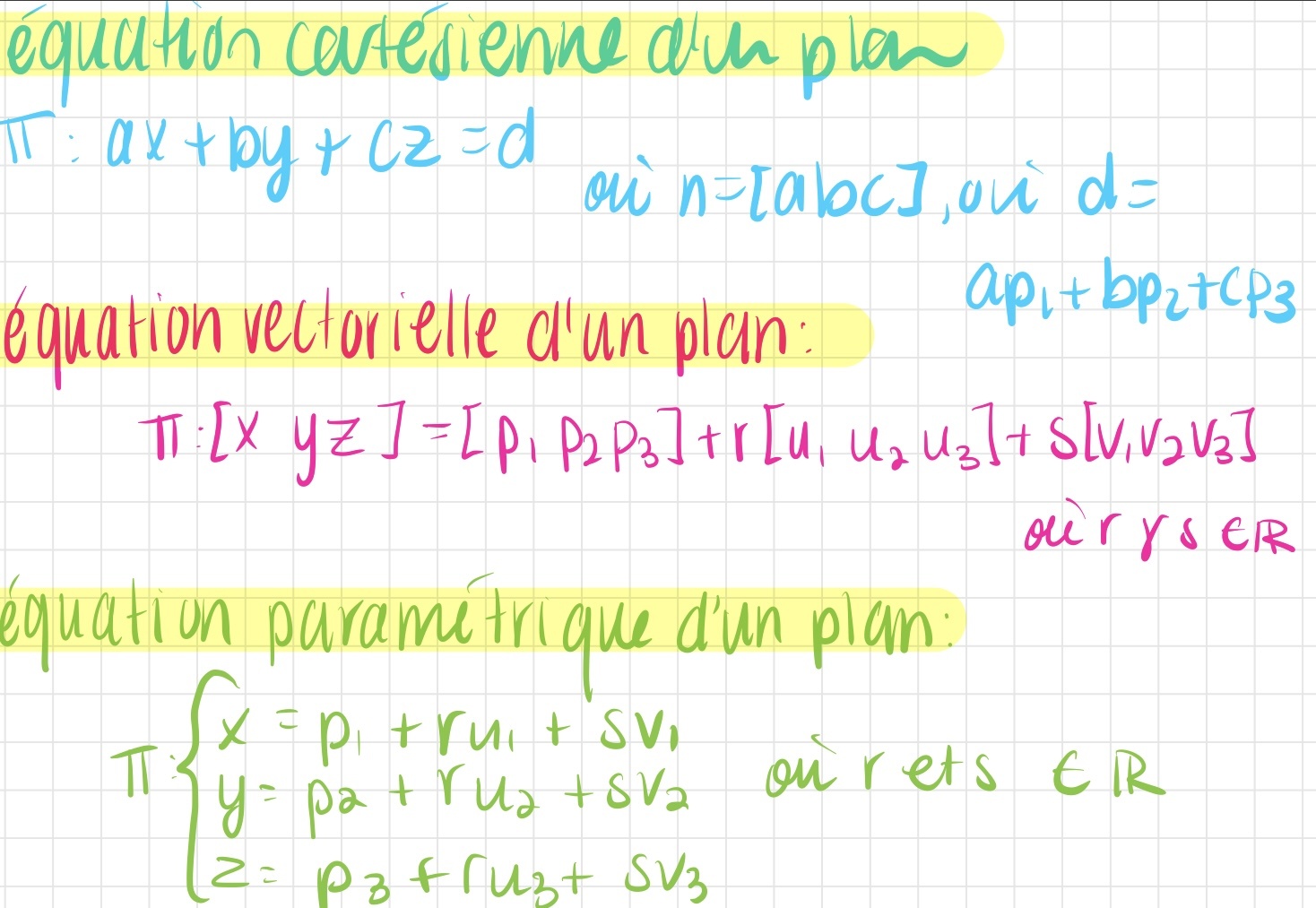 A noter que les équations paramétrique et vectorielle représentent les équation d'un plan sous des formes différentes qui peuvent être utiles dans différents contextes .