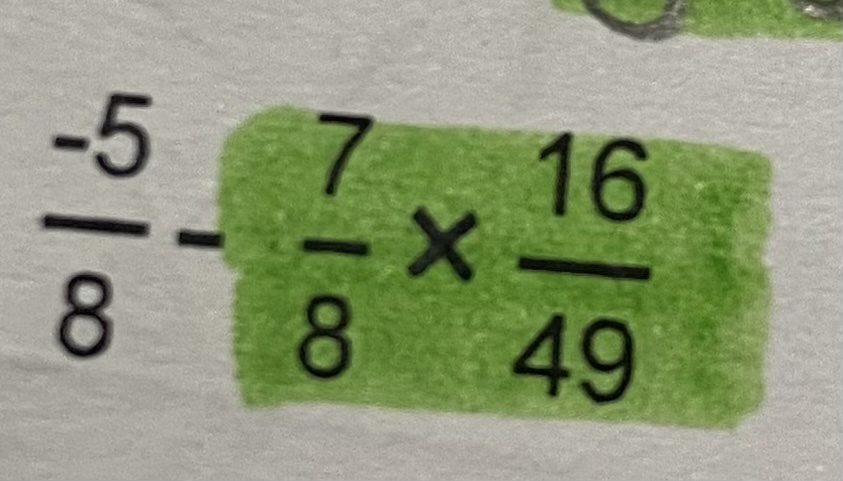 $$ \frac{-5}{8} - \frac{7}{8}\times \frac{16}{49} $$
