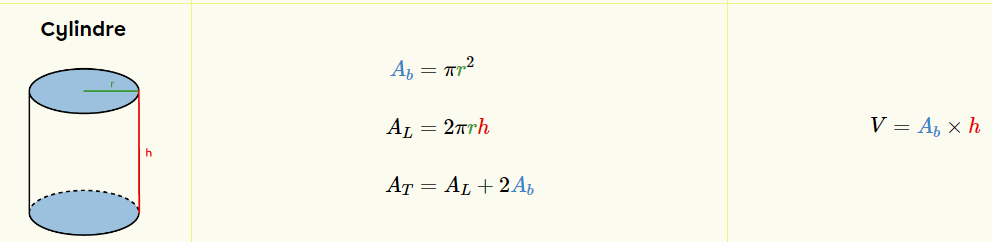 Ainsi, le diamètre ne nous permet pas de déterminer la hauteur du cylindre. Le diamètre nous permet seulement de trouver l'aire des bases.