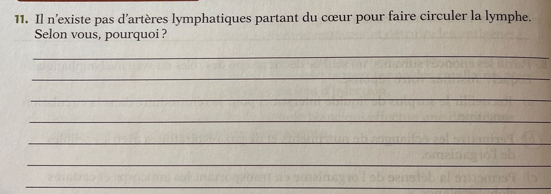 Tu peux penser au rôle de l'artère par rapport aux vaisseaux lymphatiques. Le système sanguin utilise les artères pour faire circuler l'oxygène à l'aide des pulsation du cœur. Le système lymphatique fait circuler la lymphe :