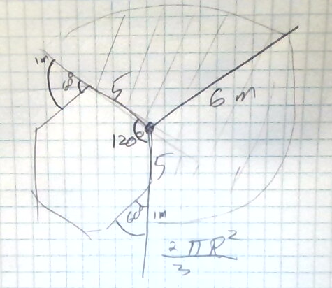 en sachant qu’une chèvre est attaché à le coin d’un hangar hexagonale de 4m par 5 m et que la corde qui tient la chèvre est de 6 cm