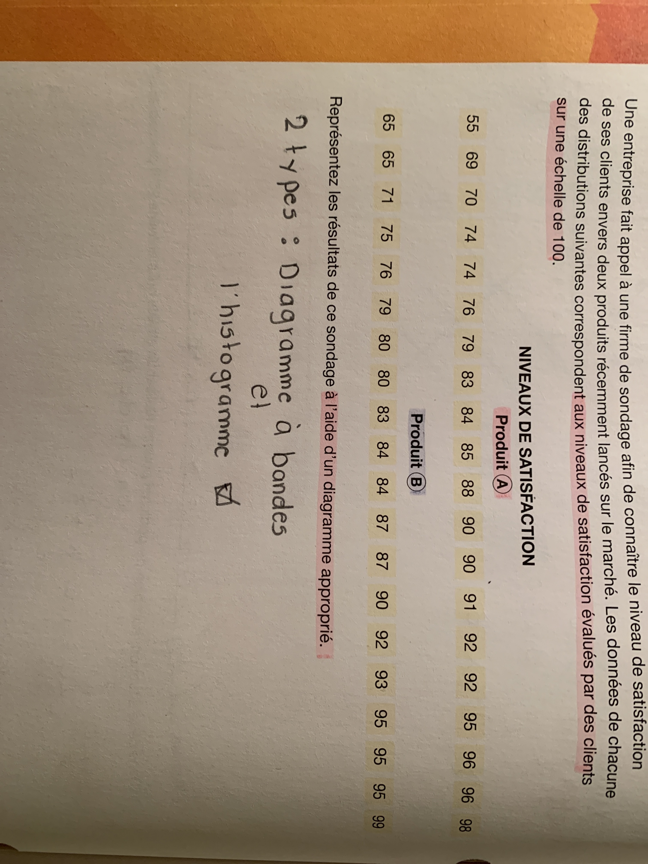 je ne comprend pas comment construire mon diagramme. Il me semblerait qu’il manque les effectifs pour les notes non? Par exemple, 55, combien ont mis cette note ?