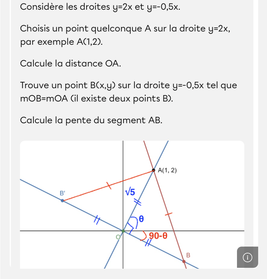 Avocat tenace vient de m’envoyer ça, mais je ne sais pas comment trouver le point B(x,y) sur la droite y=-0,5x