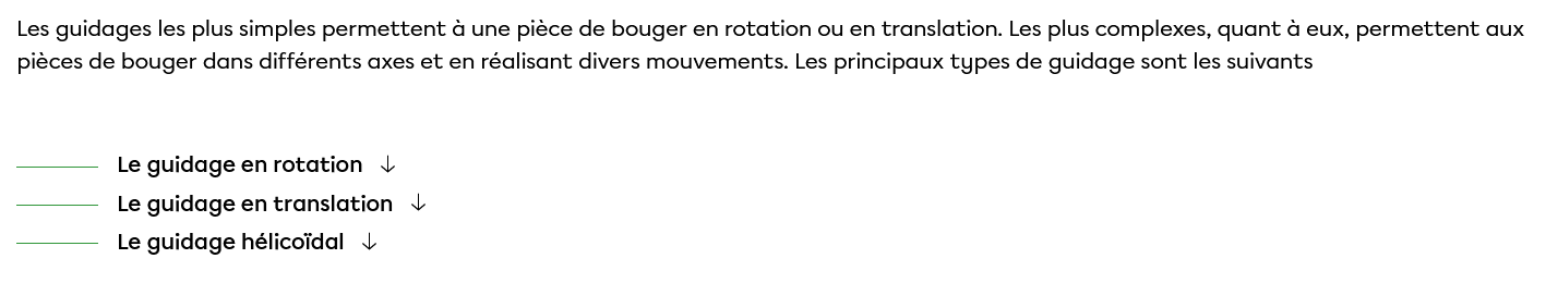 La fonction de guidage est la fonction mécanique élémentaire jouée par un ou plusieurs organes qui permettent à un autre élément de se déplacer d'une façon précise, soit en rotation, en translation ou les deux à la fois.