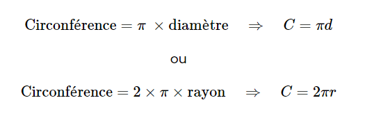 Si on te donne la circonférence du cercle, tu peux utiliser la formule suivante :