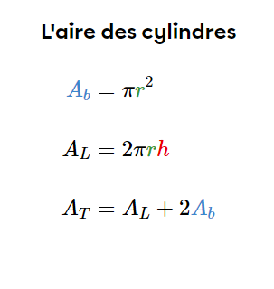 Je crois bien que tu te demandes comment calculer l'aire du cylindre sans connaitre la mesure de la hauteur.