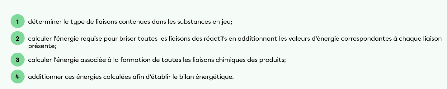 Voici les étapes à suivre pour déterminer le bilan énergétique de la réaction.
