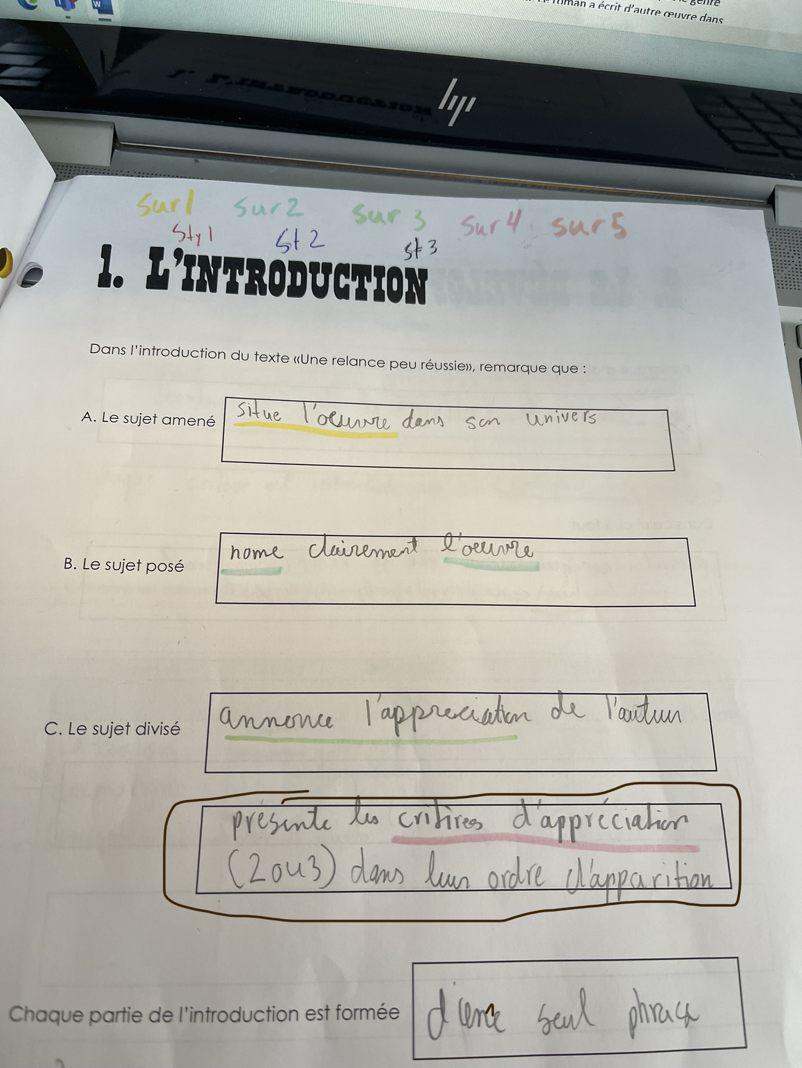Allo, j’ai une question pour l’introduction d’un texte d’appréciation critique et dans cette image le sujet diviser je ne comprends pas c’est quoi << présent les critiques d’appréciation>>