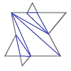 Pour ce qui est de la somme de tous les angles, incluant les angles rentrants, ça fonctionne un peu comme avec les polygones convexes. Pour trouver la somme des angles intérieurs, habituellement, dans un polygone convexe, on choisit un sommet et on trace toutes les diagonales pour former des triangles. Il y a toujours deux triangles de moins qu'il y a de côté. C'est pourquoi tu as peut-être vu la formule \[\text{Somme} = (n-2)\times 180^{\circ}\]