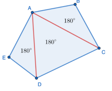 La somme des mesures des angles intérieurs d'un triangle est toujours de 180 degrés. Ainsi, sachant que ce polygone est formé de 2 triangles :