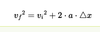 Donc vi=0, on connait a, △x=10m et on cherche vf.