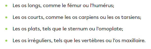 Il existe quatre catégories d'os, les voici :