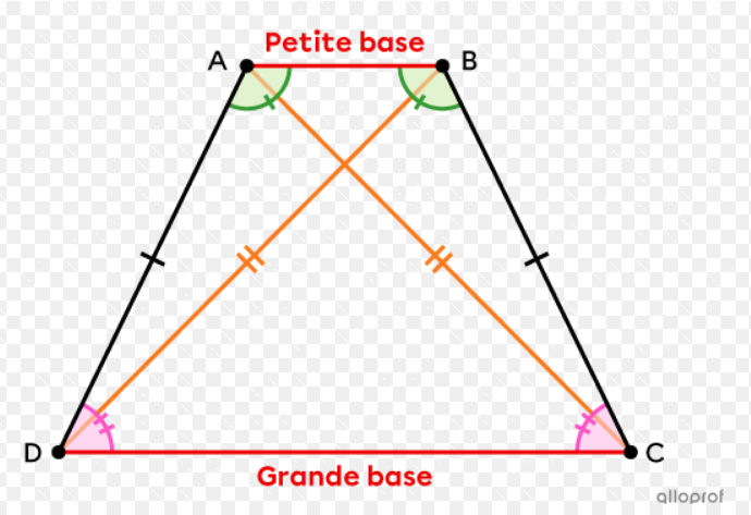 J'aimerais savoir que si le trapèze isocèle a deux paire d'angles isométriques est-ce que c'est à cause du fait que les angles opposées aux cotés isométriques sont isométriques.