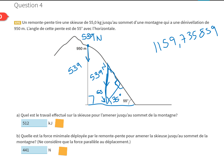 Selon le travail trouvé en A, tu pourras calculer la force.