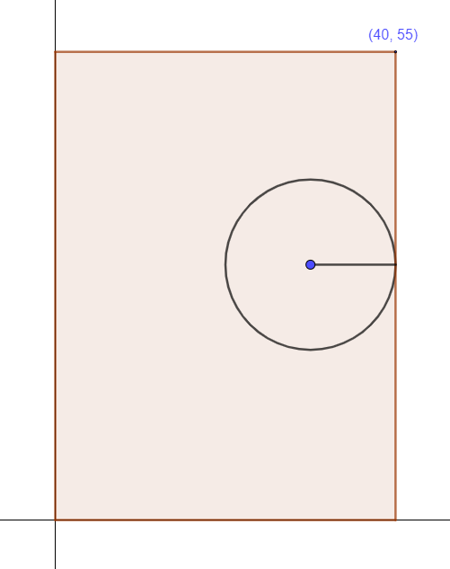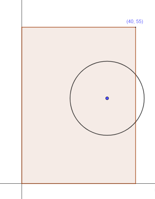 Le centre du cercle est (20,30). Note que 20 est la moitié de la largeur du rectangle.