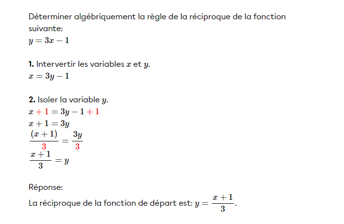 Tout d'abord, tu dois savoir qu'une réciproque, c'est comme le contraire d'une fonction. Pour trouver la règle de la réciproque d'une fonction affine, tu peux utiliser cette méthode: