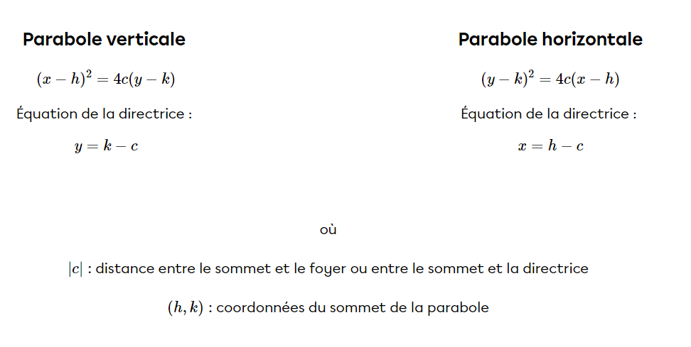 Je t'invite à consulter la fiche suivante au besoin : La parabole (conique) | Secondaire | Alloprof