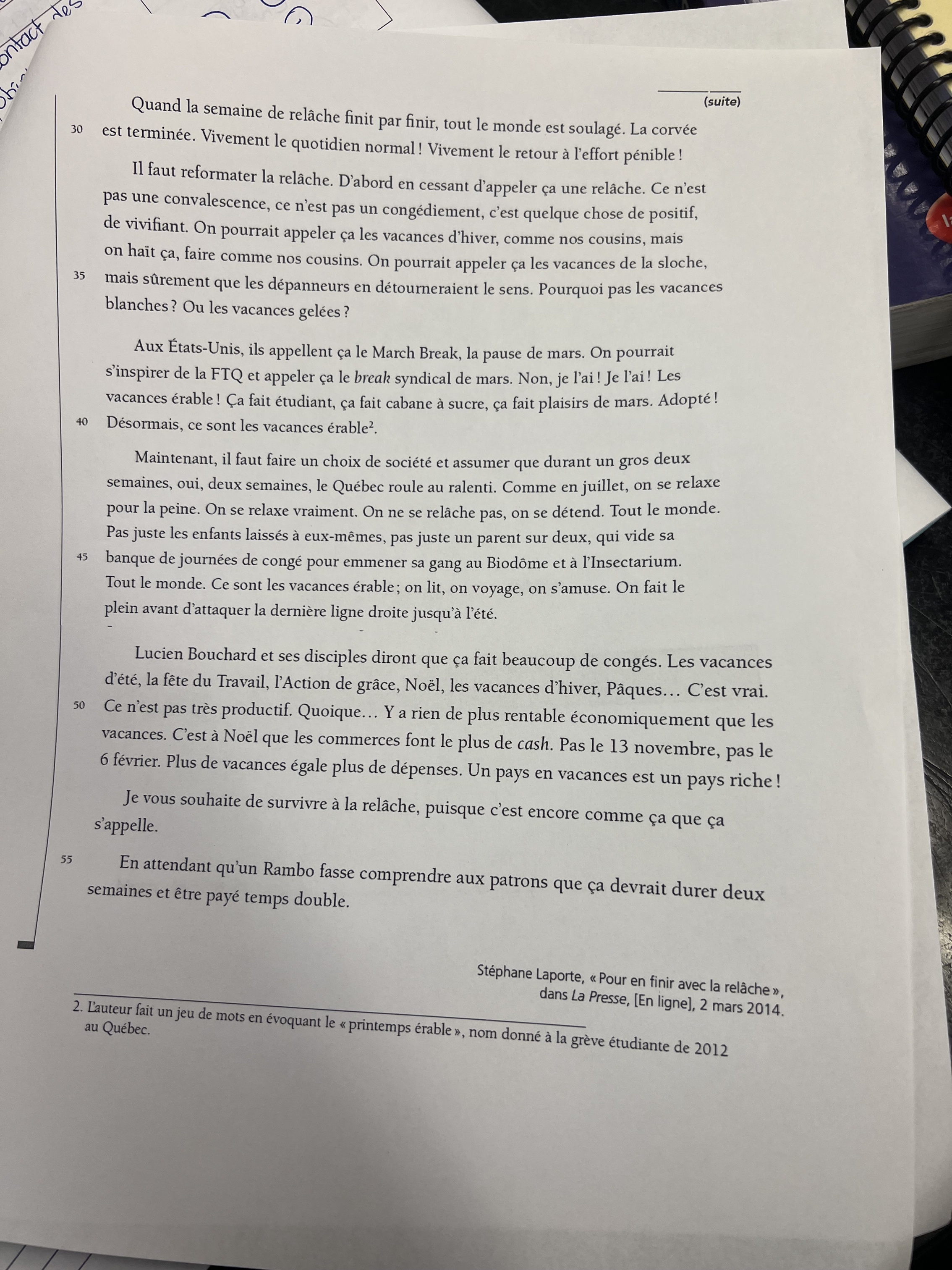 Dans ce texte, la thèse est le point de vue défendu par l’auteur ou l’autrice, la contre-thèse est un élément présenté qui va à l'encontre de la thèse précédemment présentée par l'auteur ou l'autrice et les arguments sont les raisons qui soutiennent la thèse.