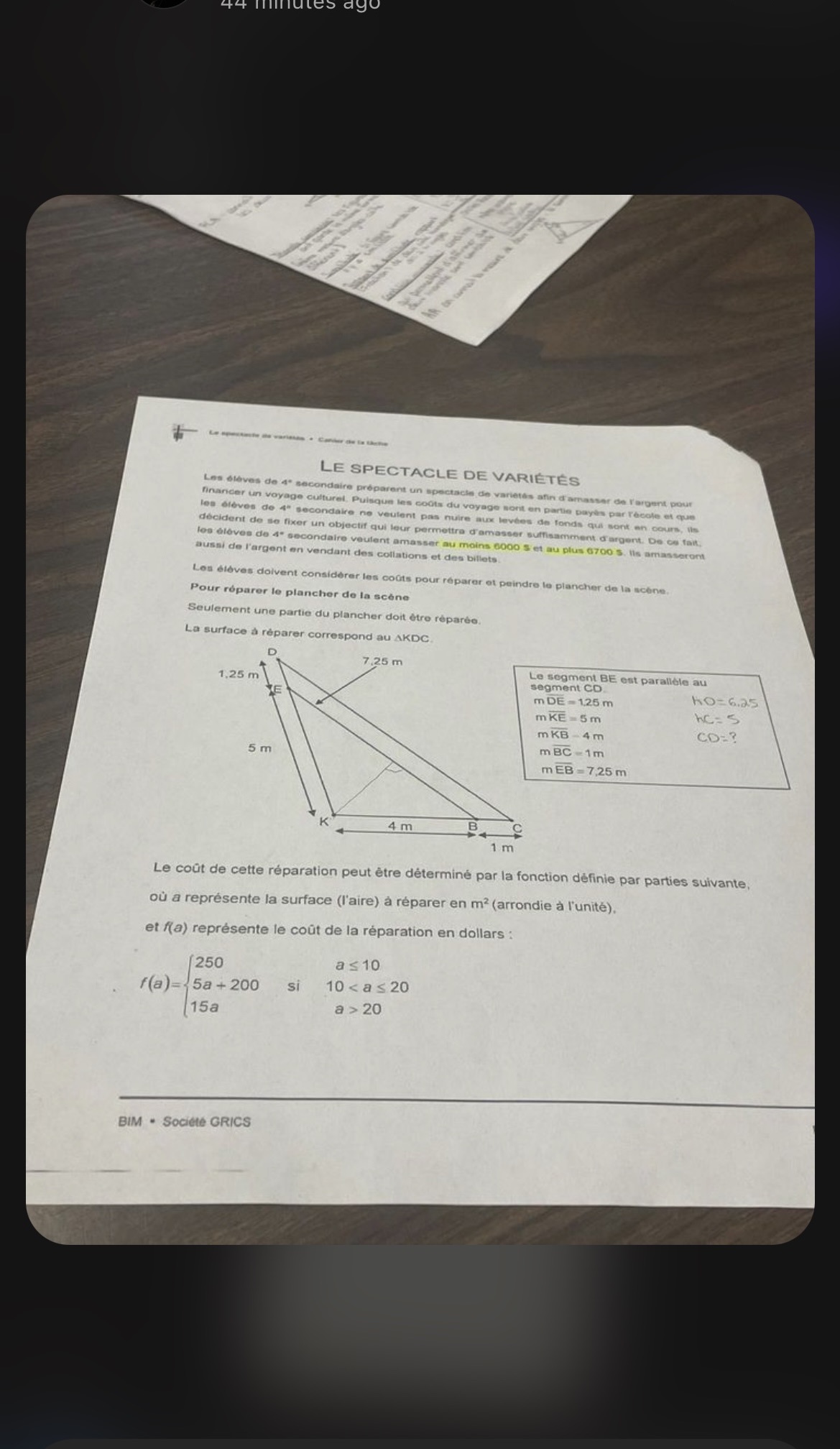 Les triangles CDK et BEK sont similaire, ce qui implique que leurs angles sont identiques.